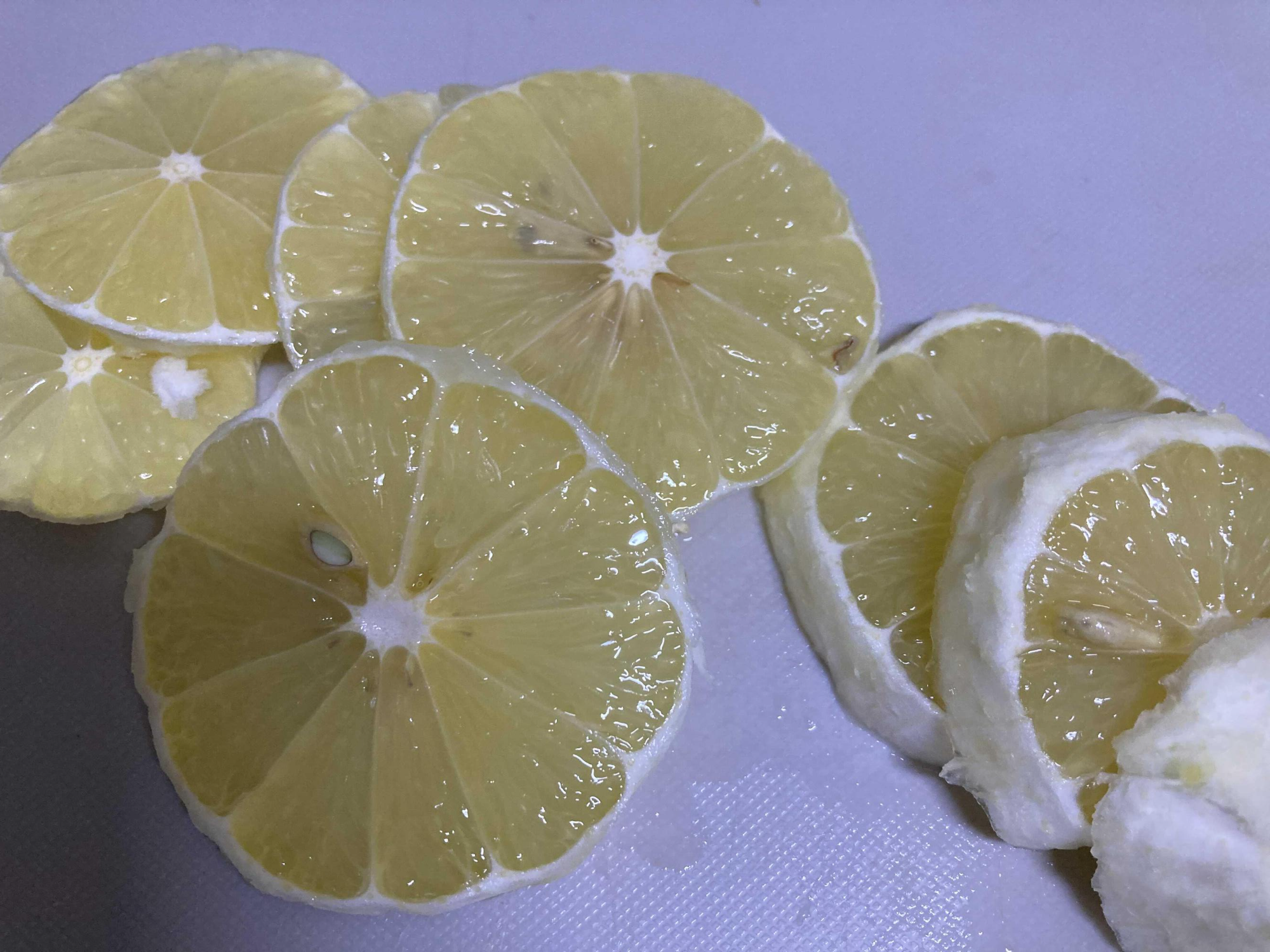 2. 손가락 두꼐정도의 두께로 레몬을 잘라줍니다