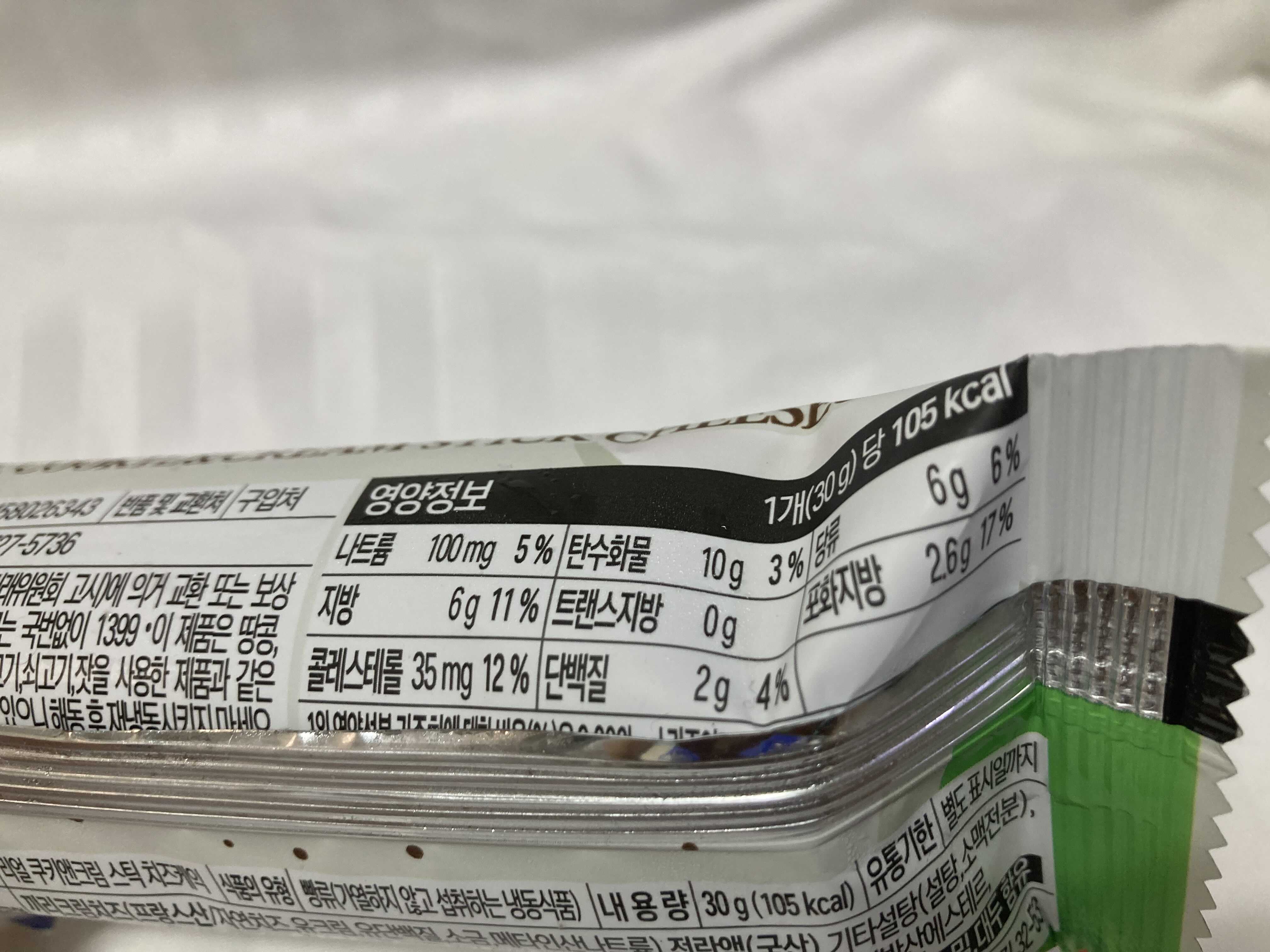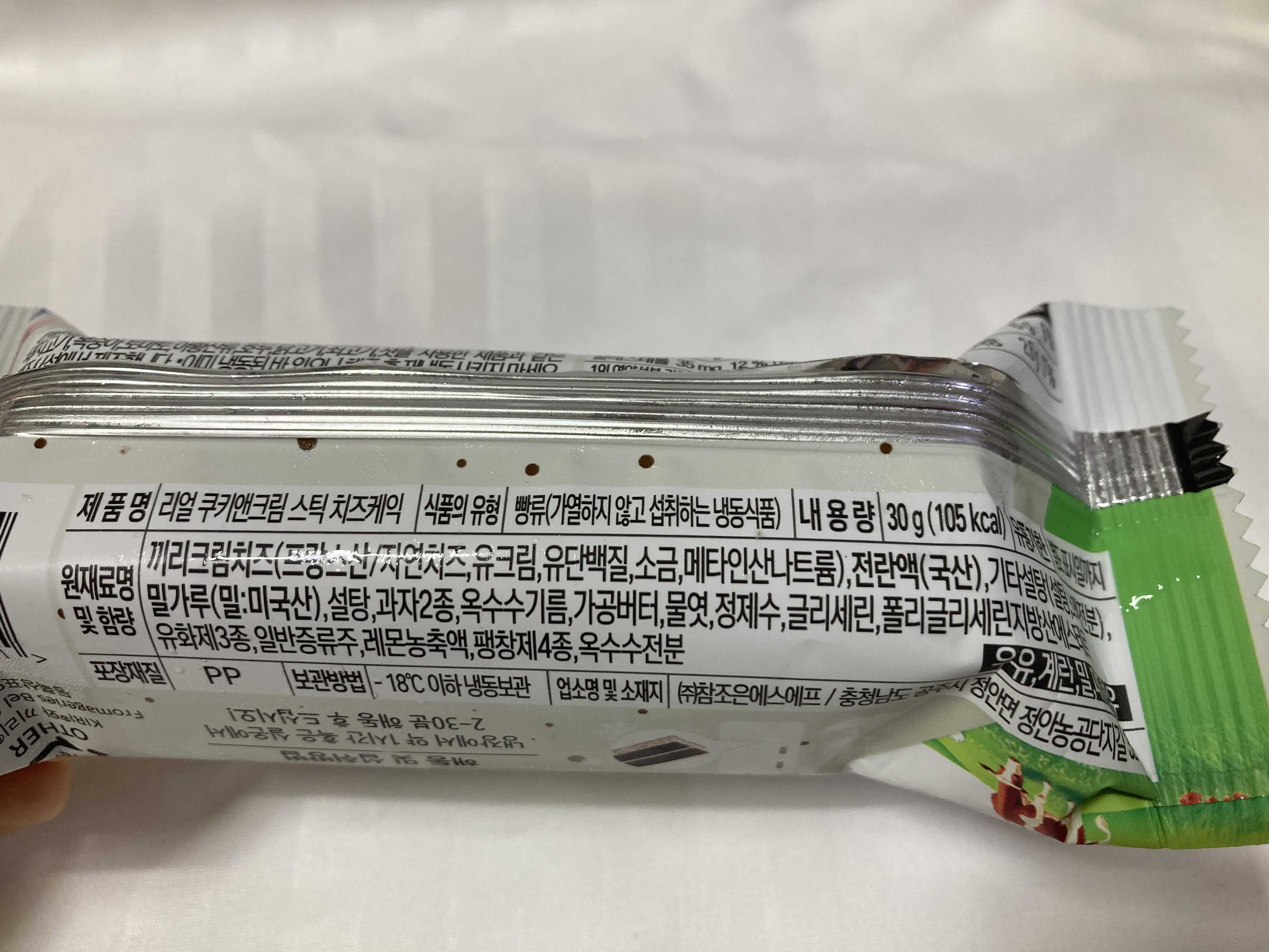 왼쪽이 리얼 쿠키앤크림 스틱 오른쪽이 플레인 맛 인데