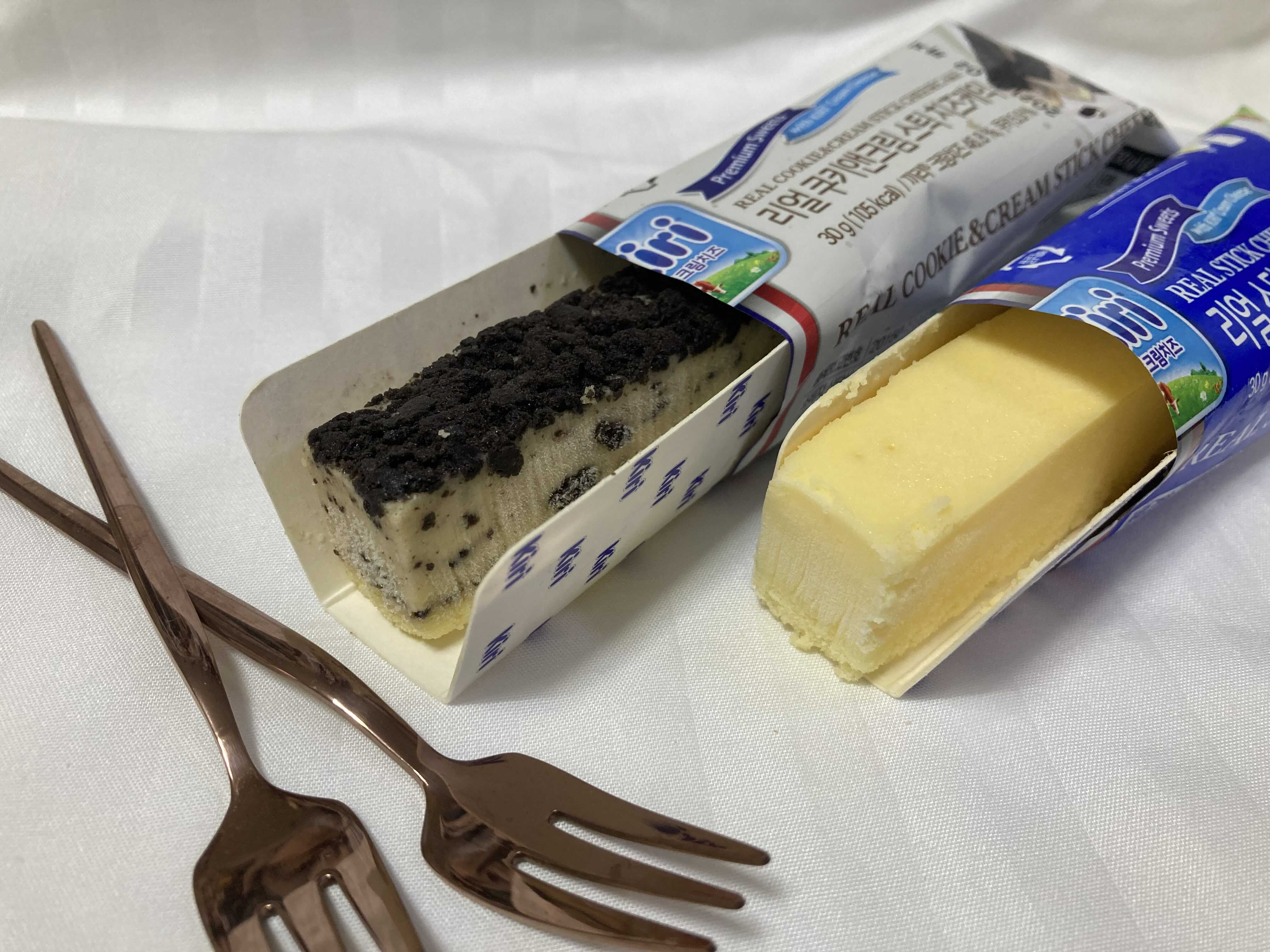 이제 kiri 리얼스틱 치즈케익 이랑 리얼 쿠키앤크림 스틱 치즈케익을 먹어보겠습니다