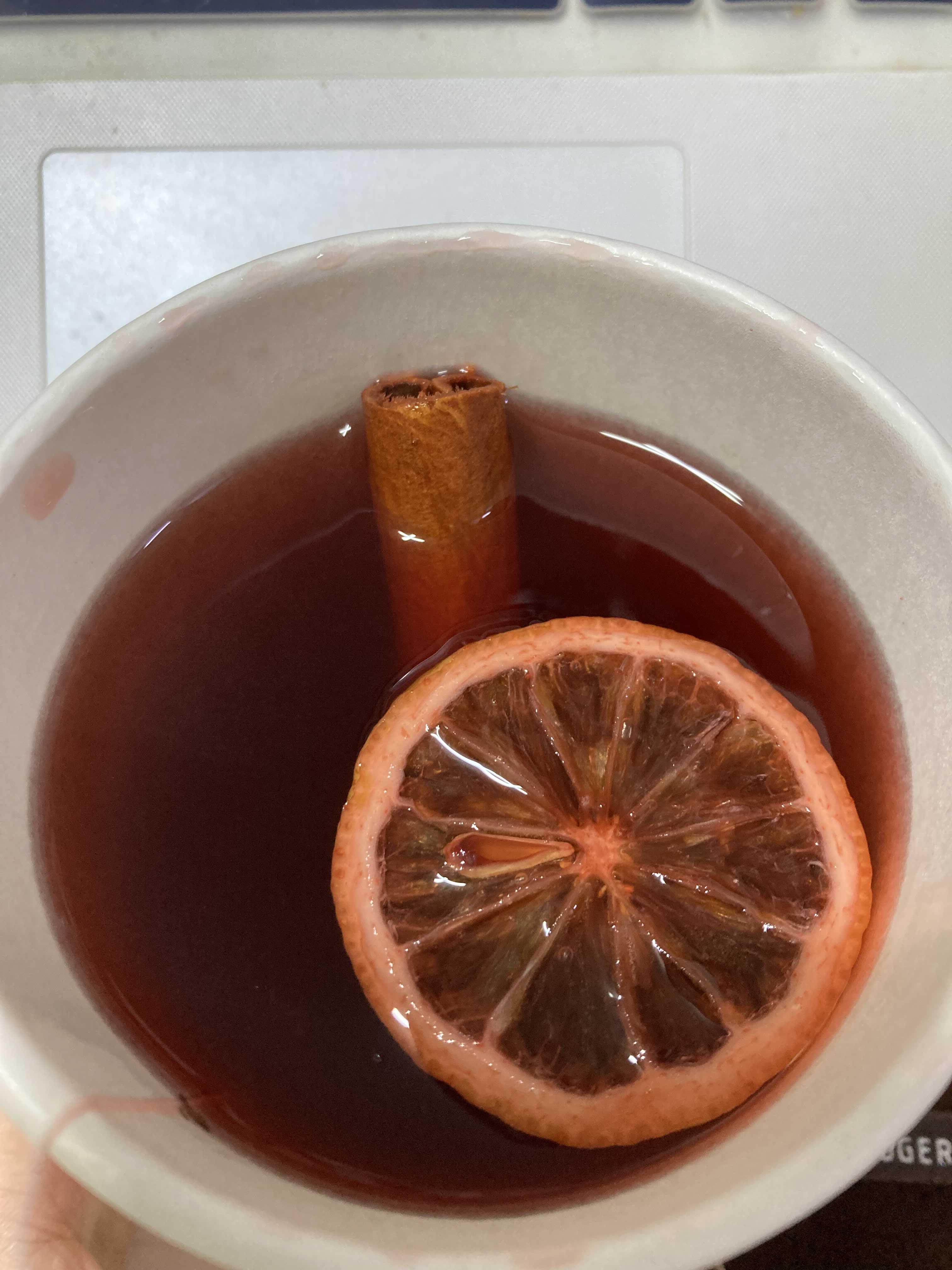 티 안에는 레몬슬라이스 와 시나몬 스틱이들어가 있는데