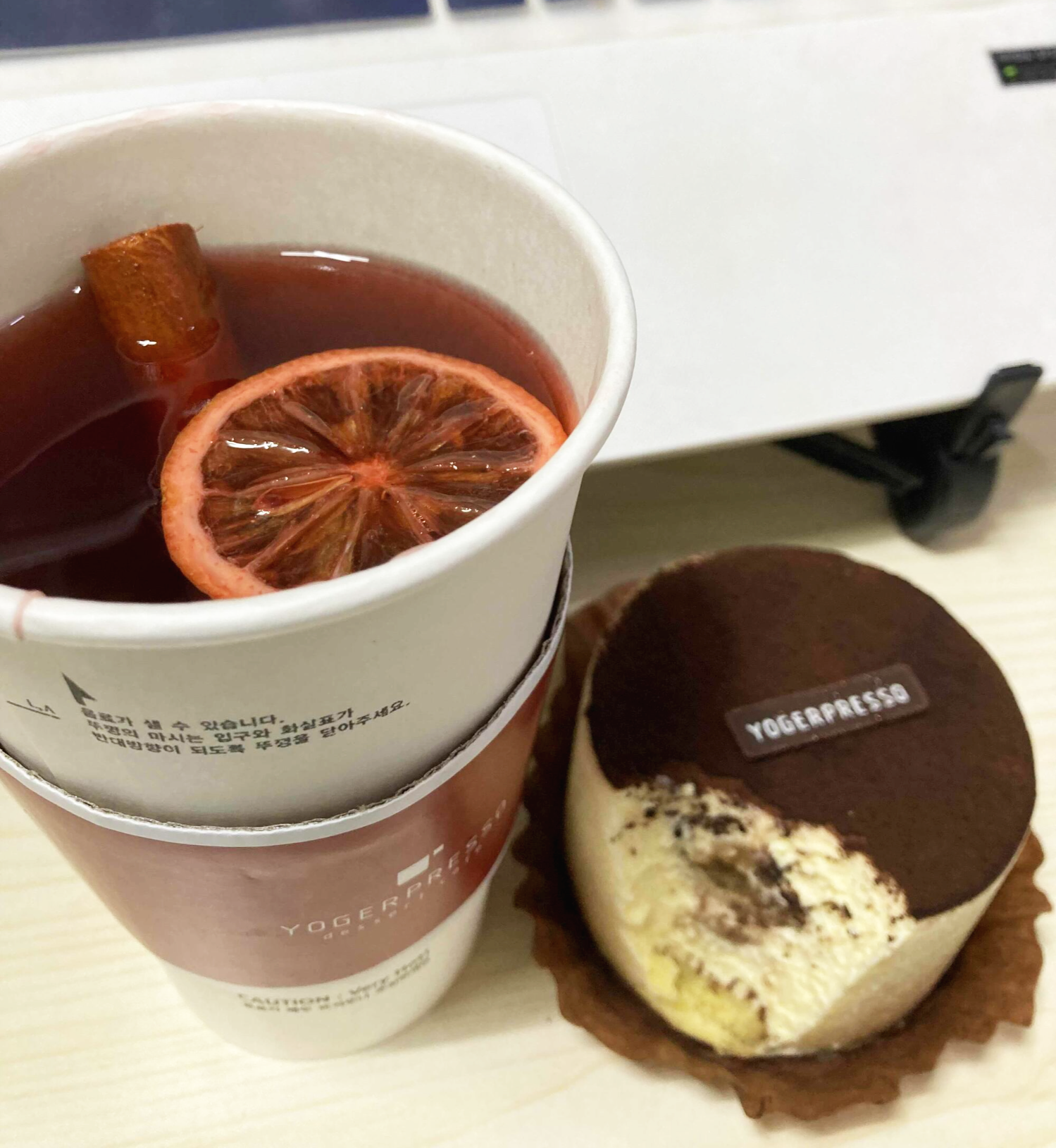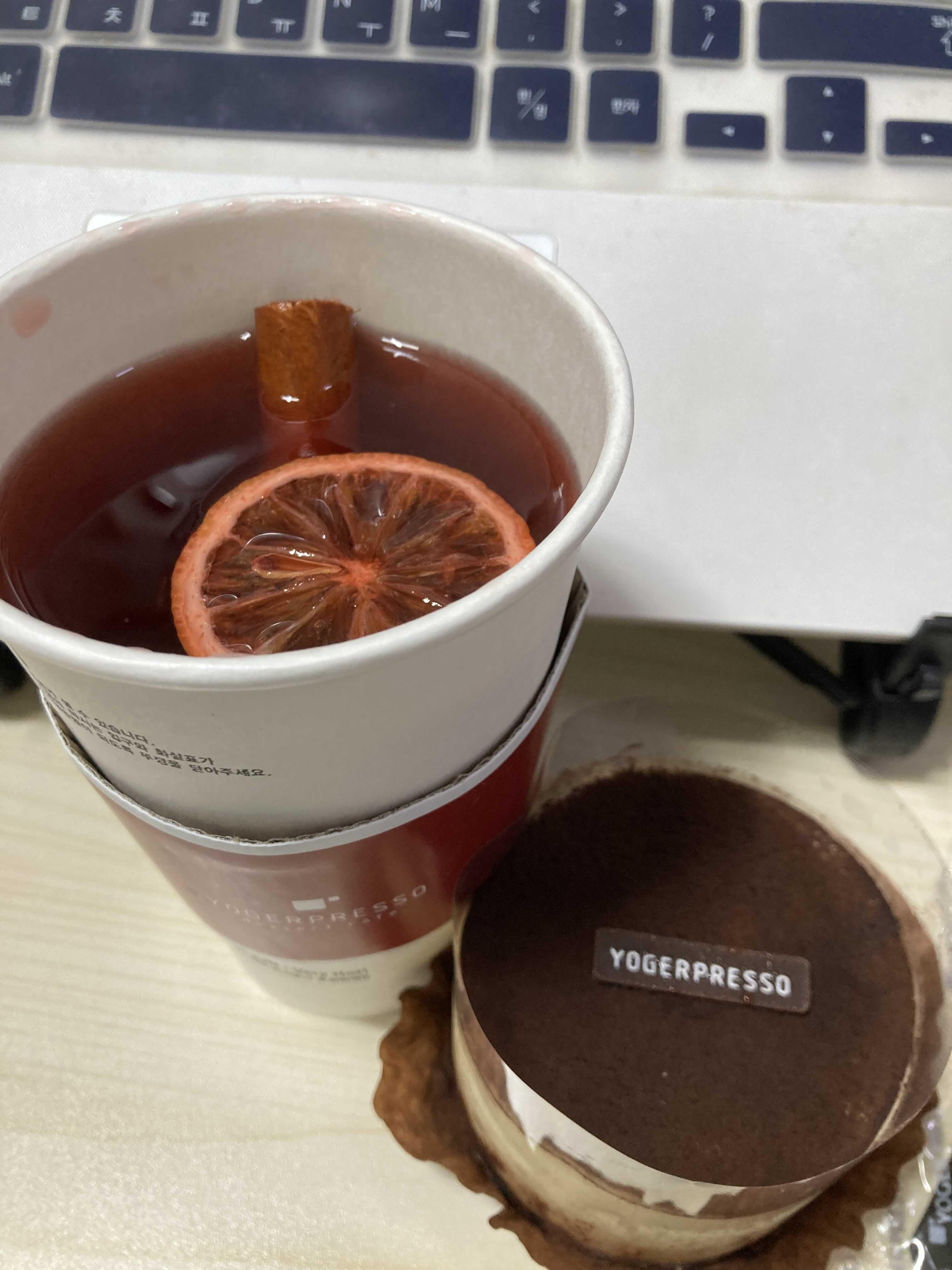요거프레소 샹그리아티 아이스,핫 둘다 있고 저는 따뜻한걸로 주문했어요