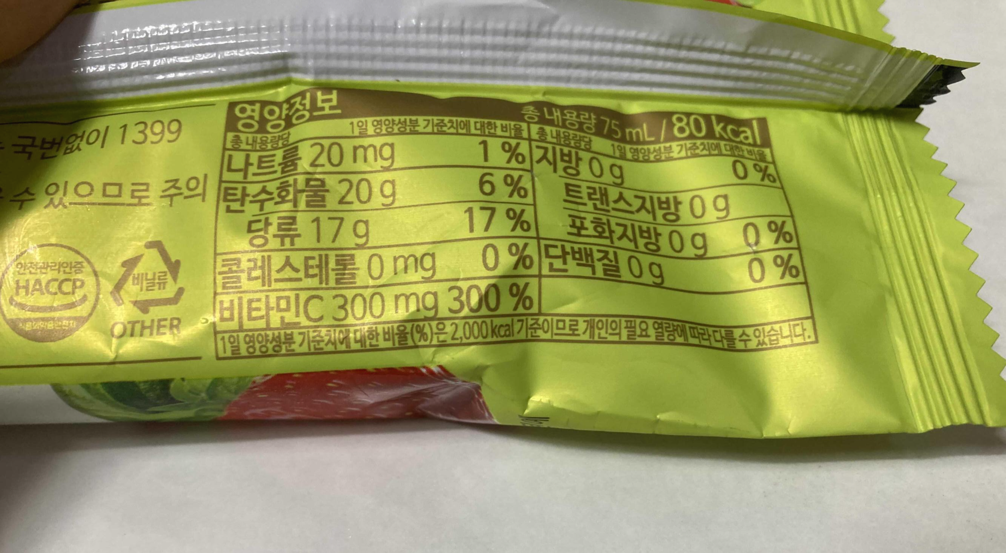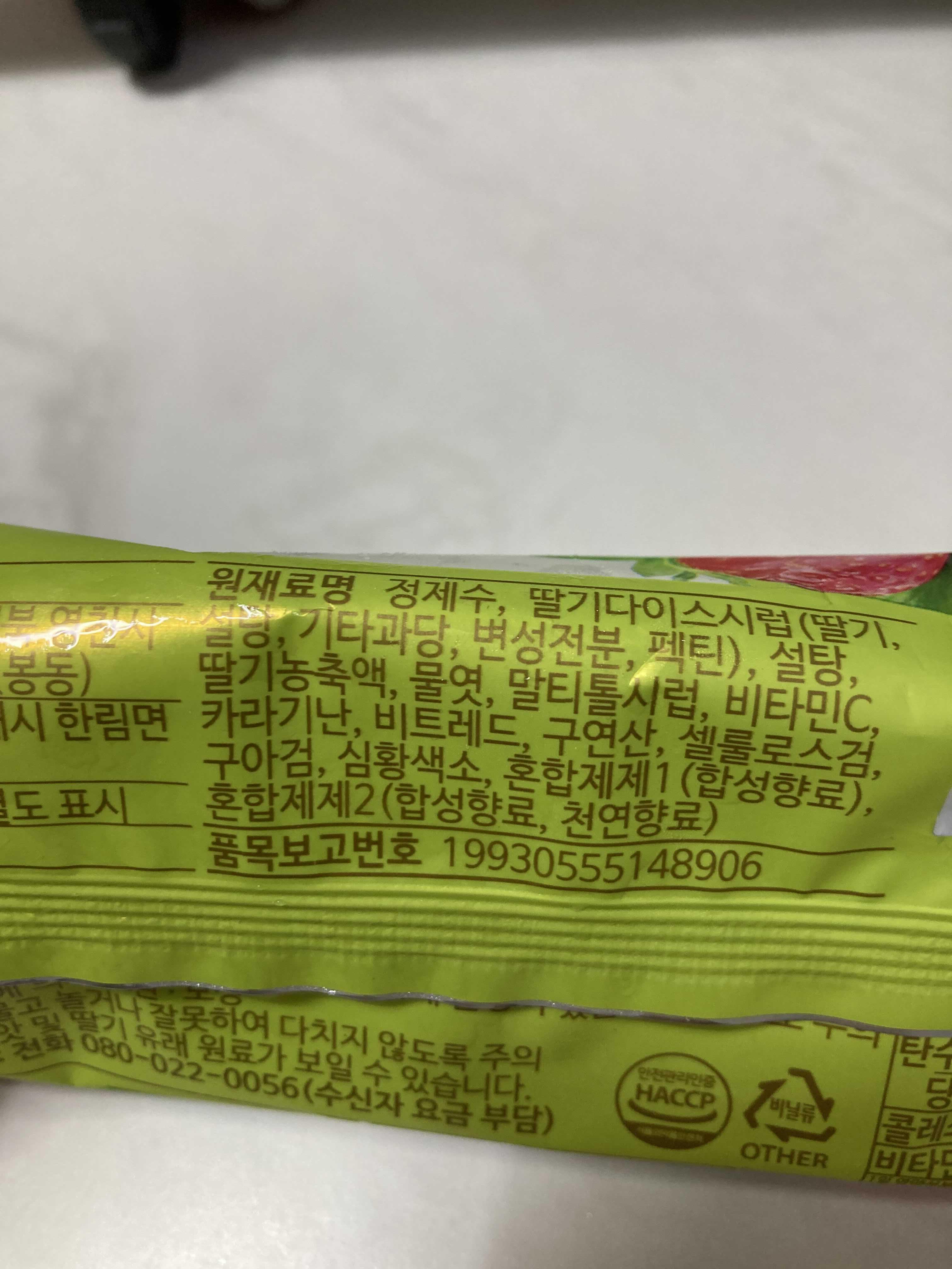 원재료에 보니 딸기시럽이나 딸기농축액이 대부분인가 봅니다