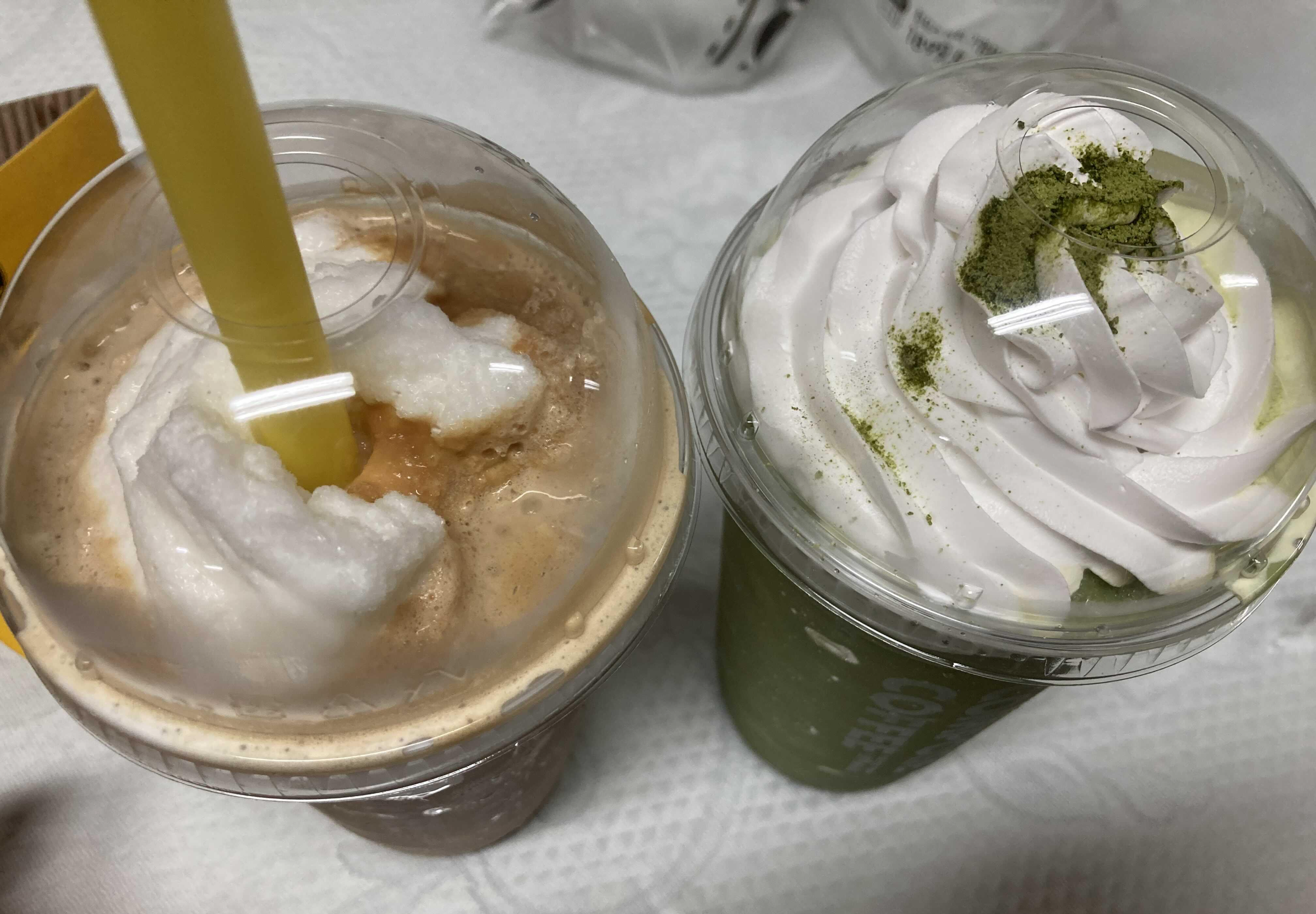 컴포트 커피밀크쉐이크 랑 그린티프라페가 별로 안 녹았더라구요