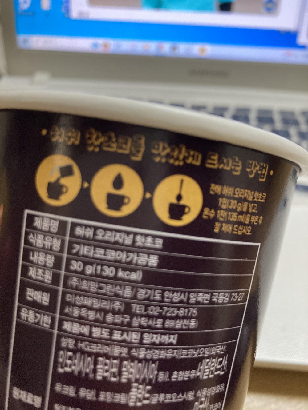 허쉬 핫초코 컵 하나 겨울 추울떄 먹기도 좋고