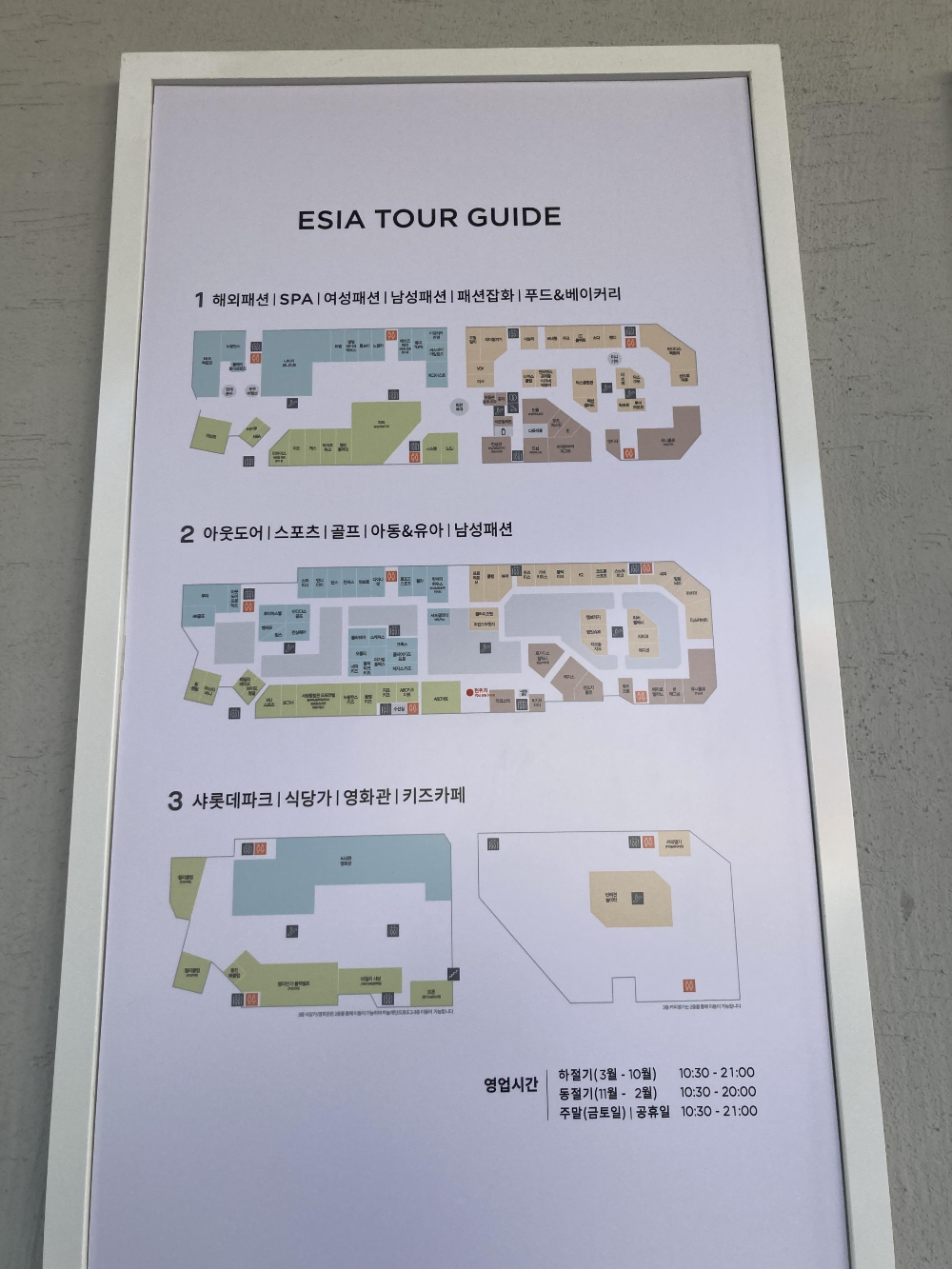 먼저 이시아폴리스 롯데백화점 층별 안내입니다.