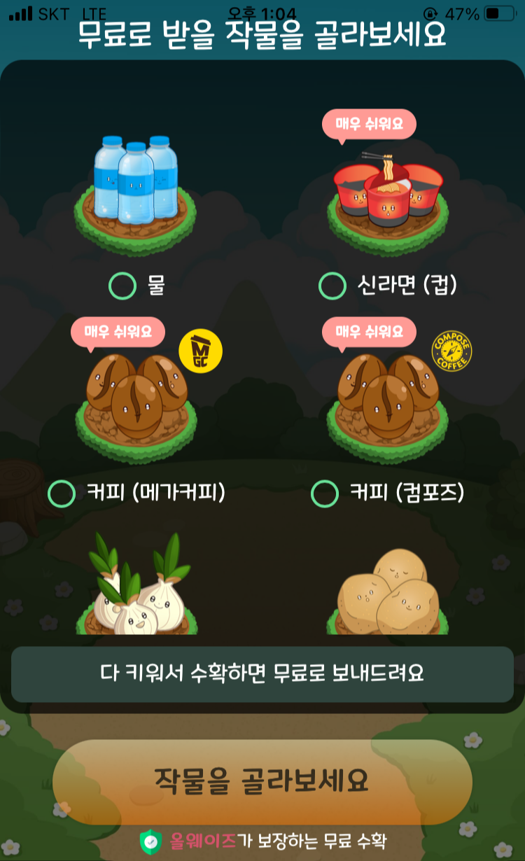 올팜 작물 종류가 보니까 좀 바꼇더라구요