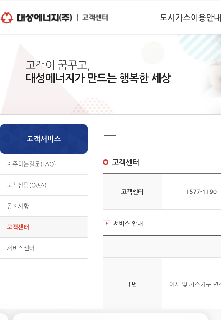 대성에너지 고객센터 전화번호를 검색해봤는데