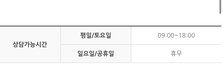 상담시간은 평일,토요일 9시에서 18시이고
