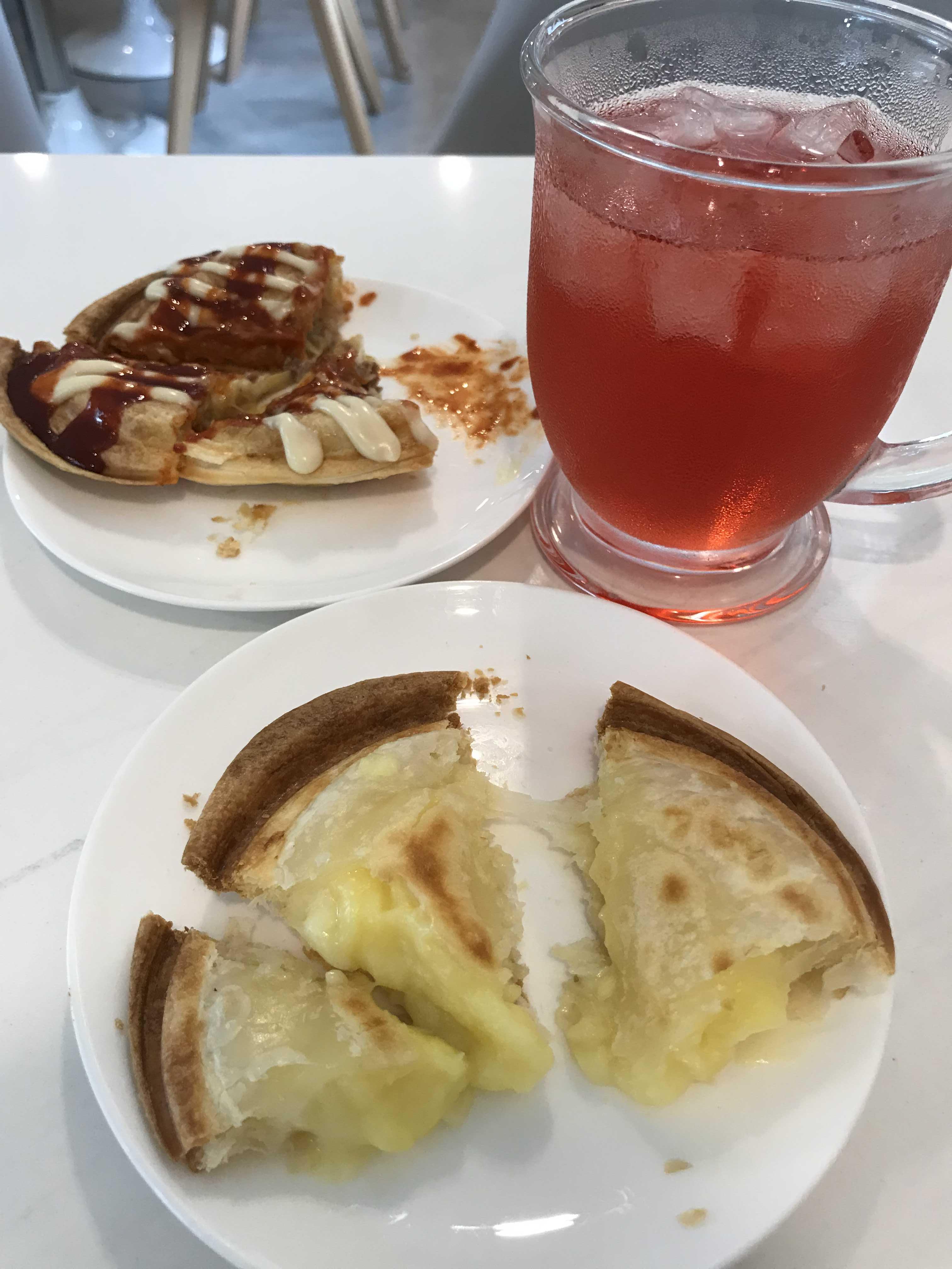 안에는 커스터드 크림과 피자치즈가 들어있어요