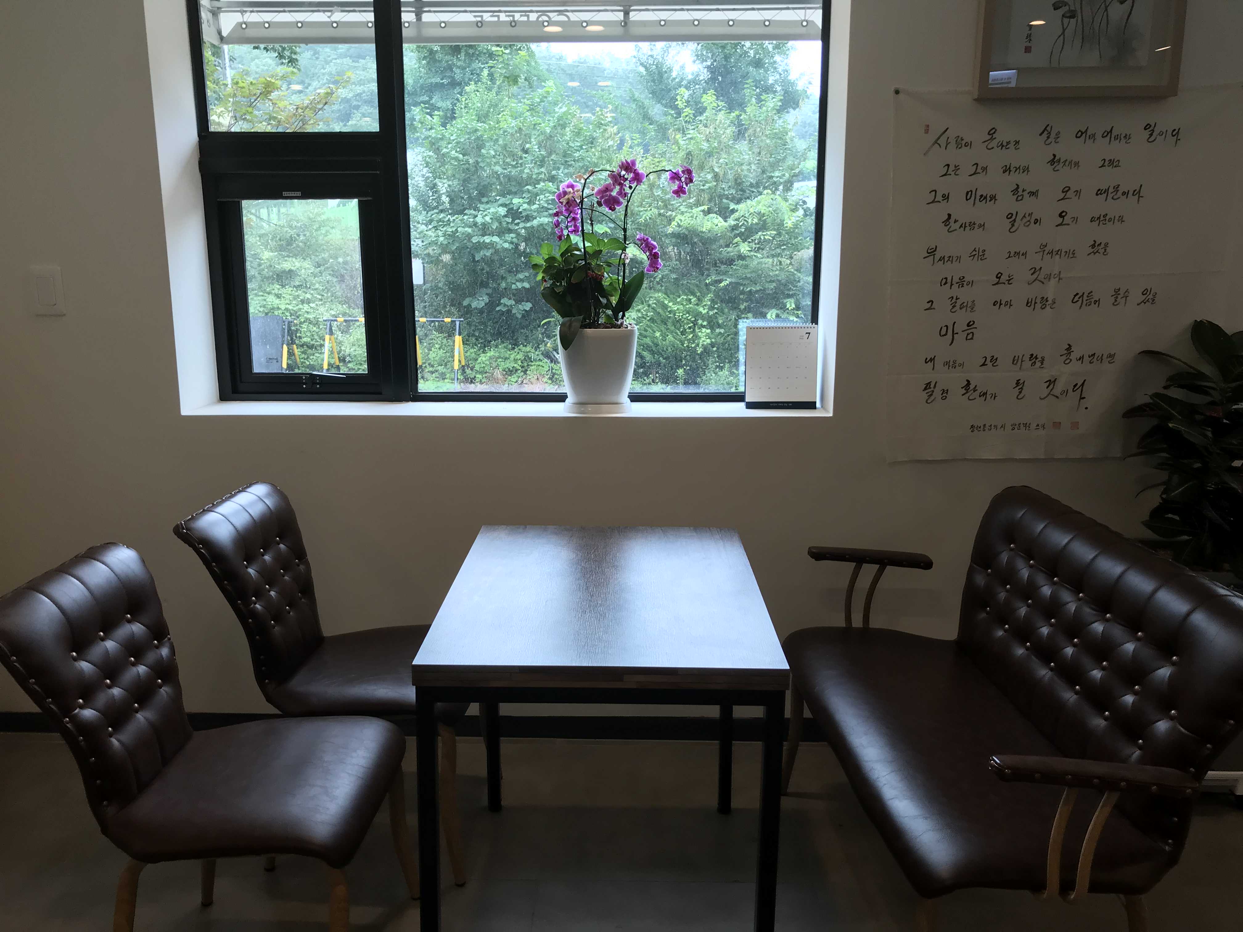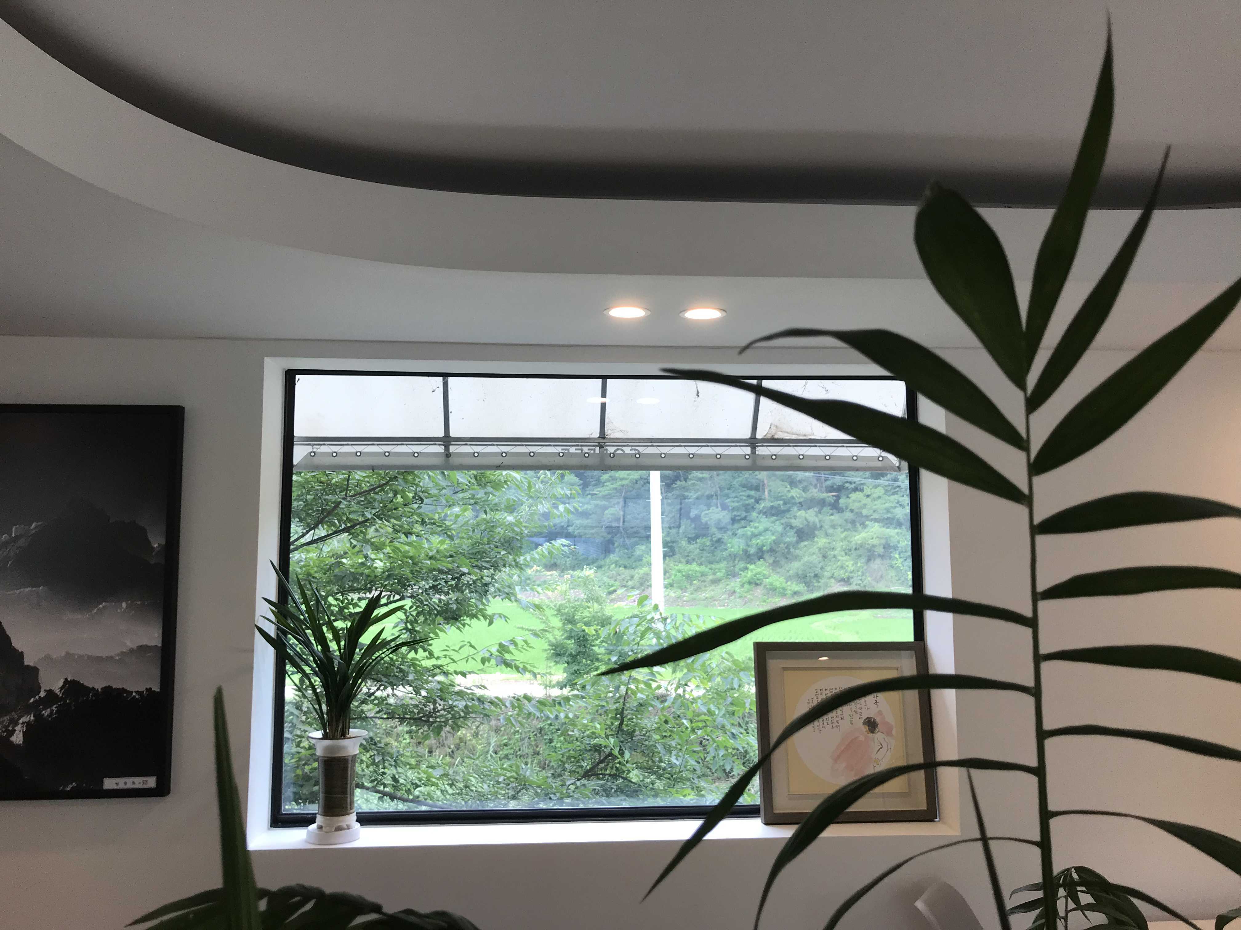 창문 너머로 보이는 초록초록한 풀들