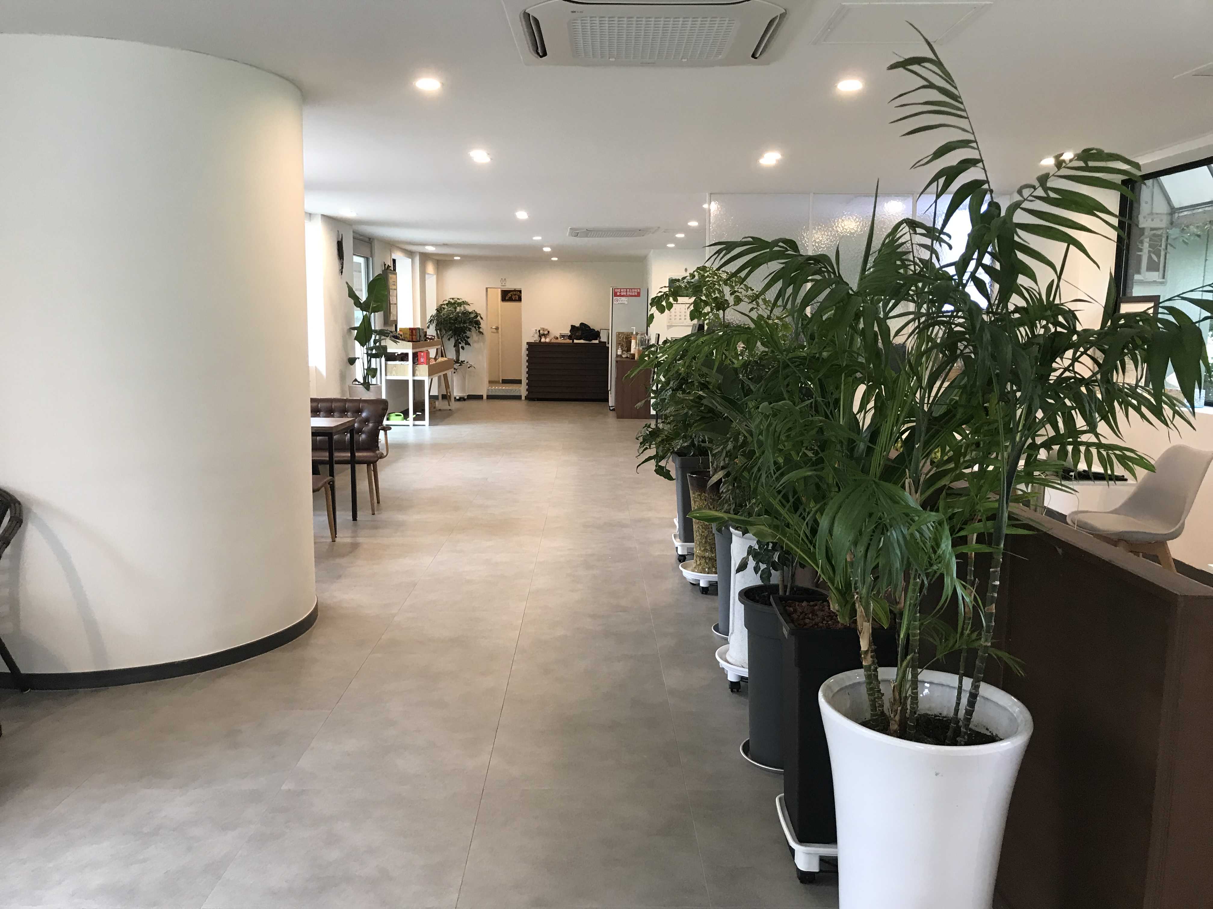 곳곳에 초록색 화분들이 있어서