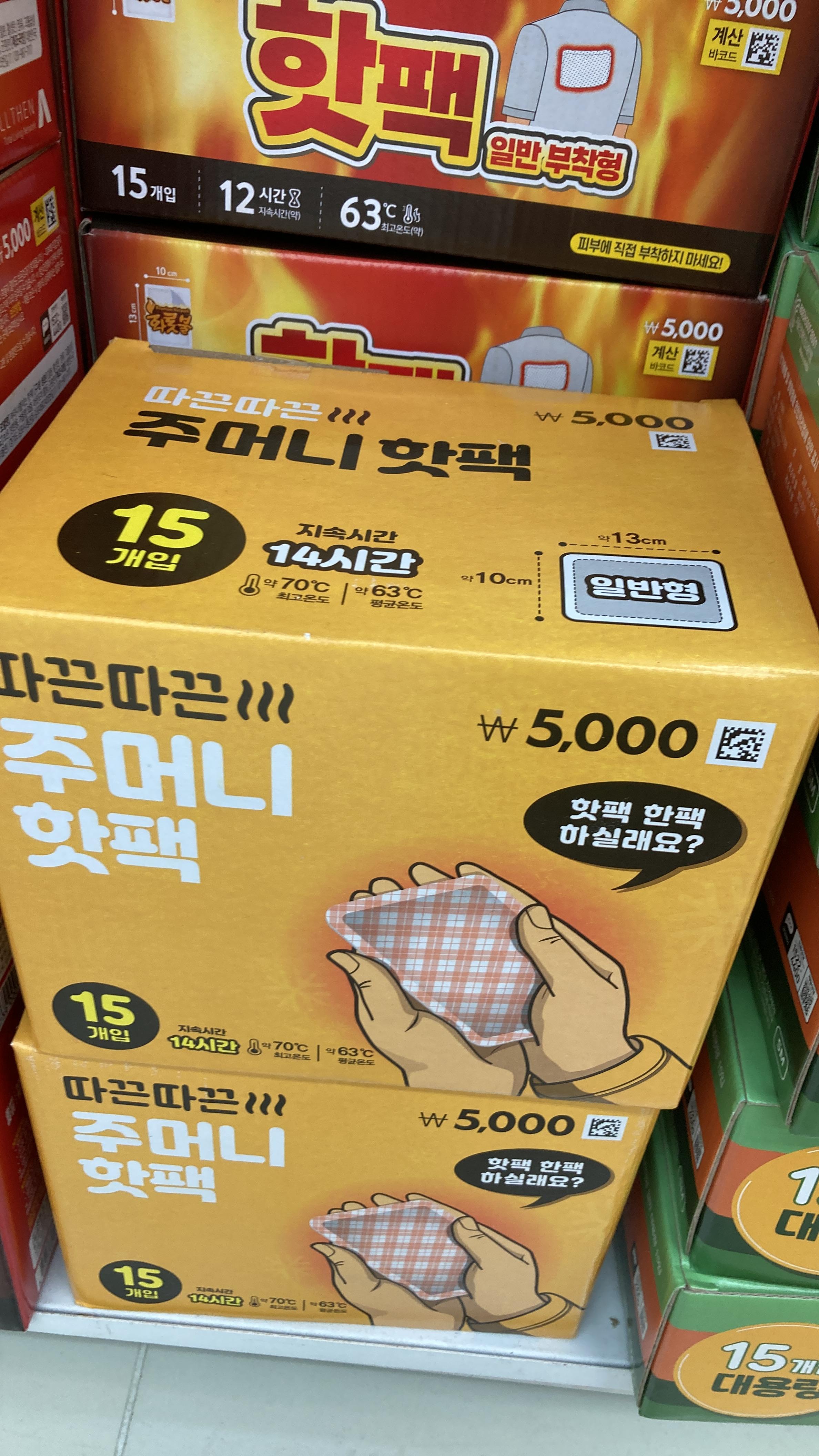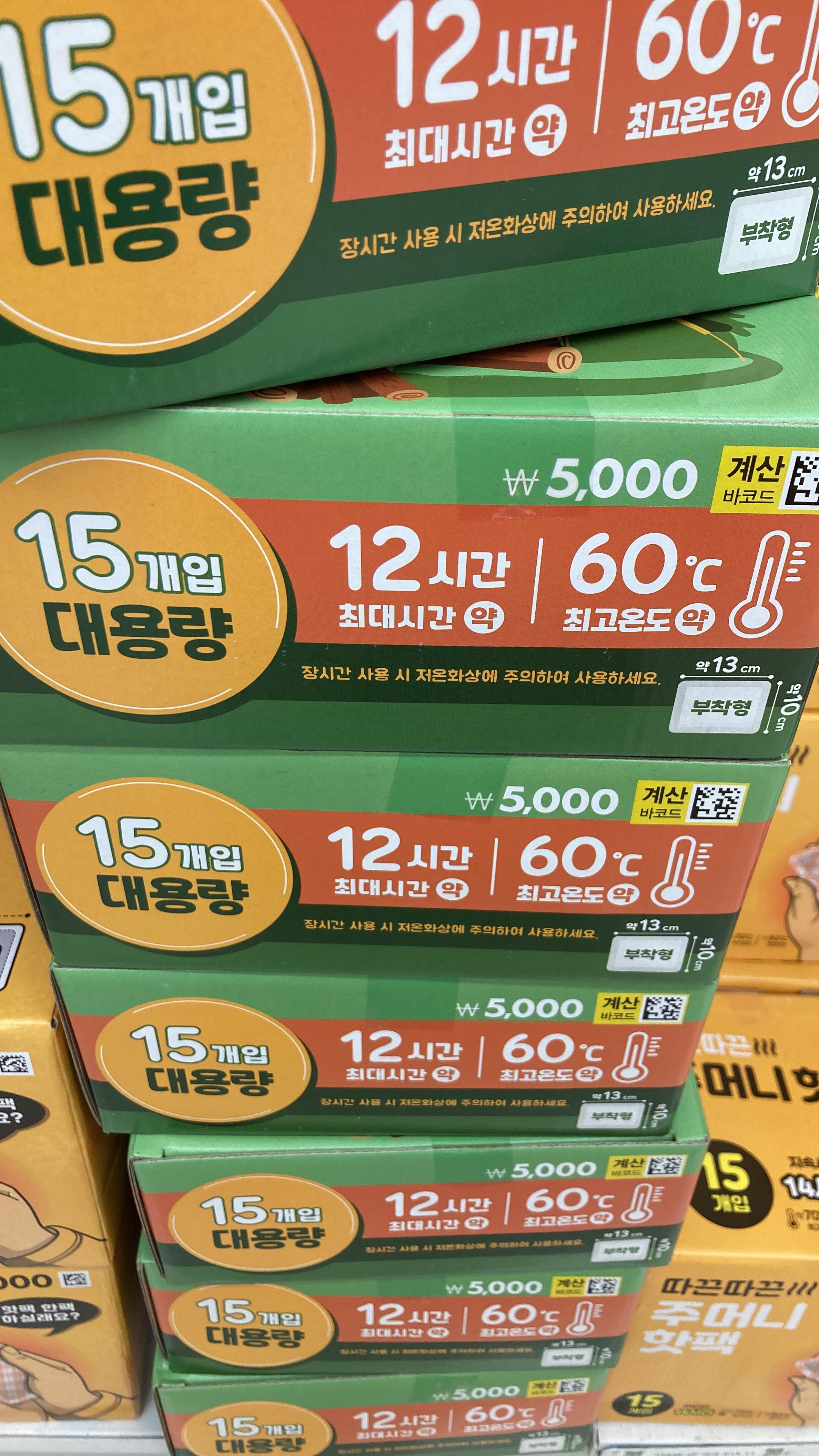 들고다닌 다이소 핫팩도 15개에 5000원 하고 있었어요.