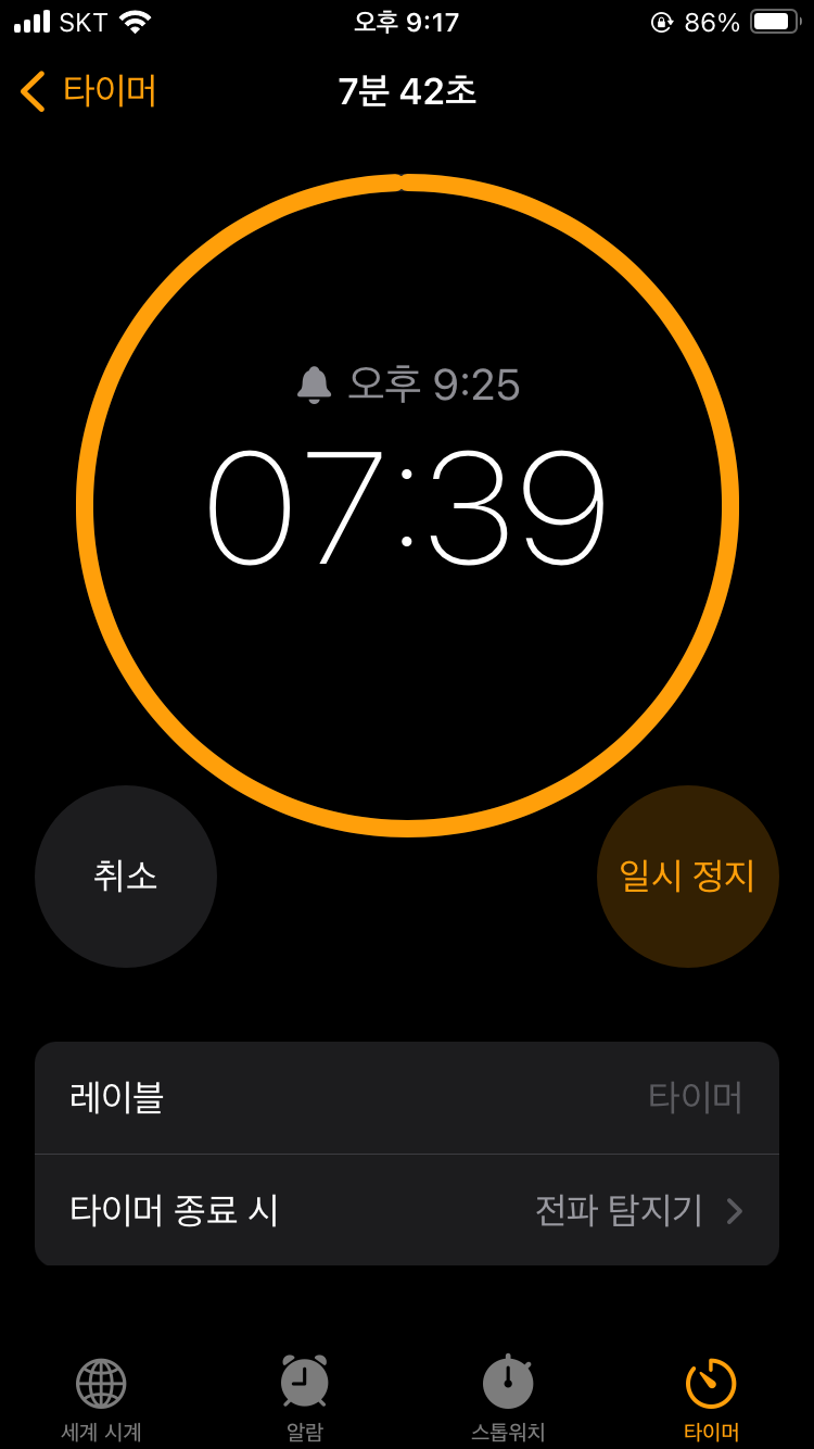이건 불에 올리고 처음부터 시간 쟀을때 7분 40초 하면 이렇게 나오구요
