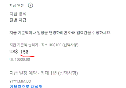 애드센스 지급 최소금액을 수정했습니다