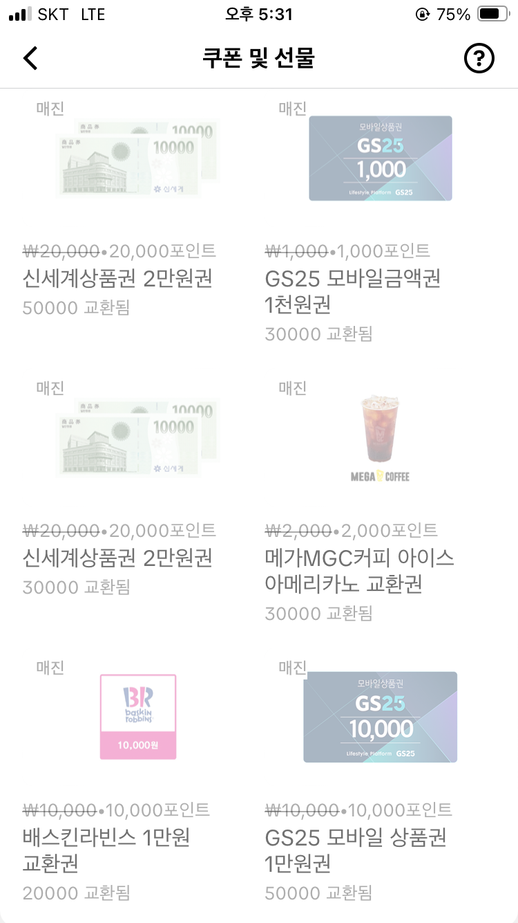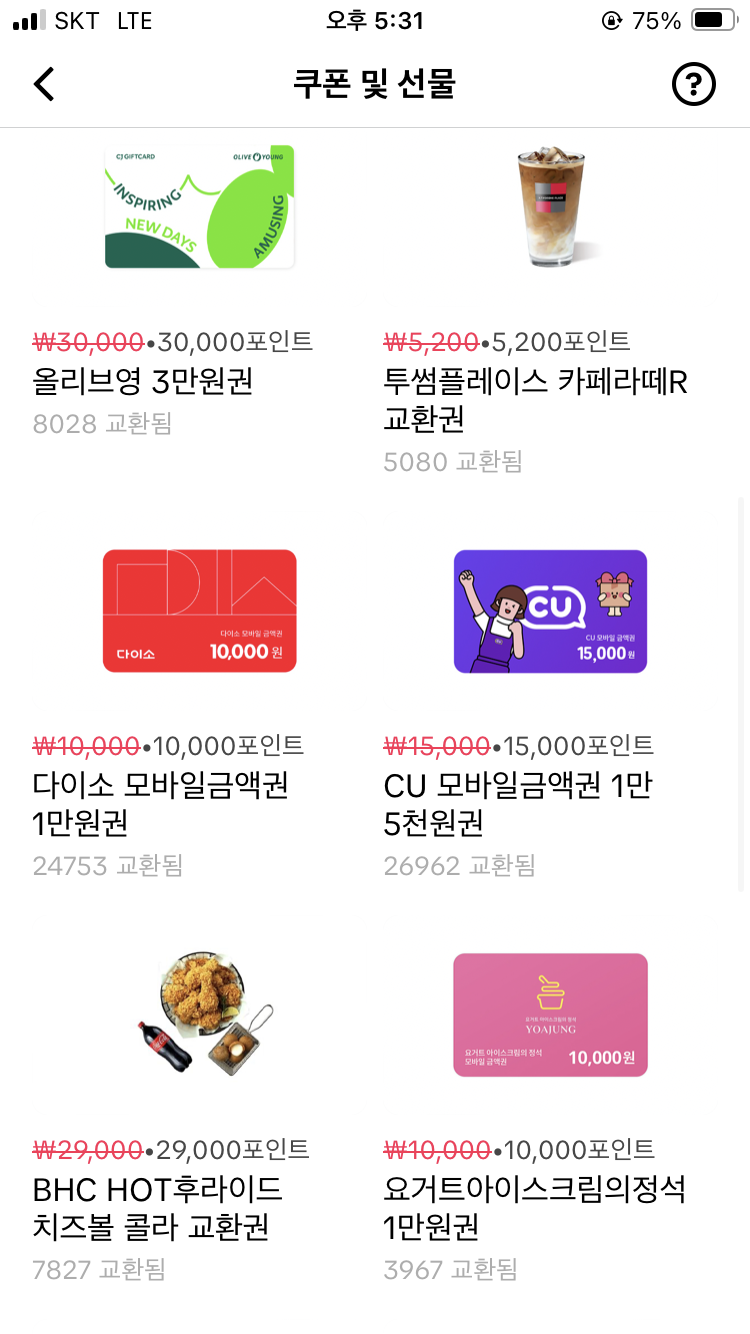 기프티콘 교환도 되지만