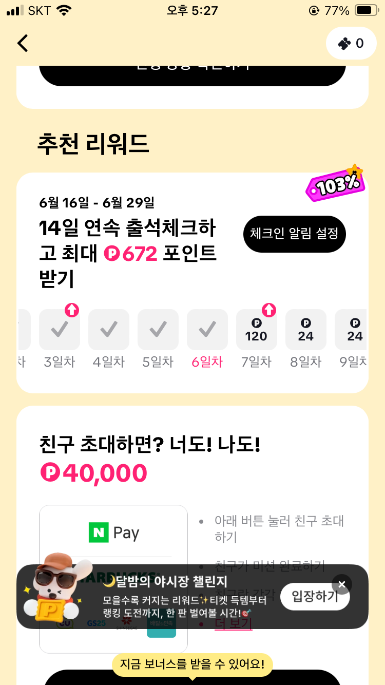 앱테크 중에서 출석체크만 하는데