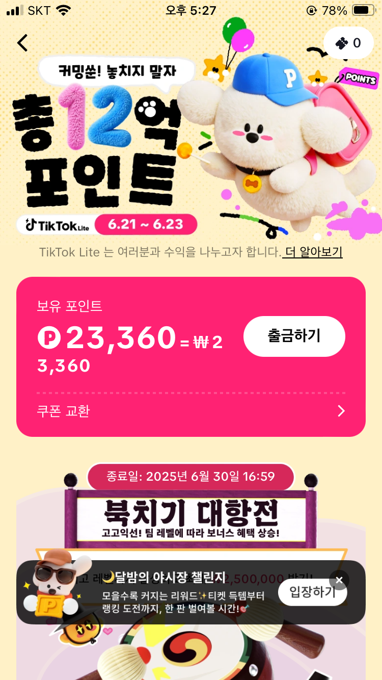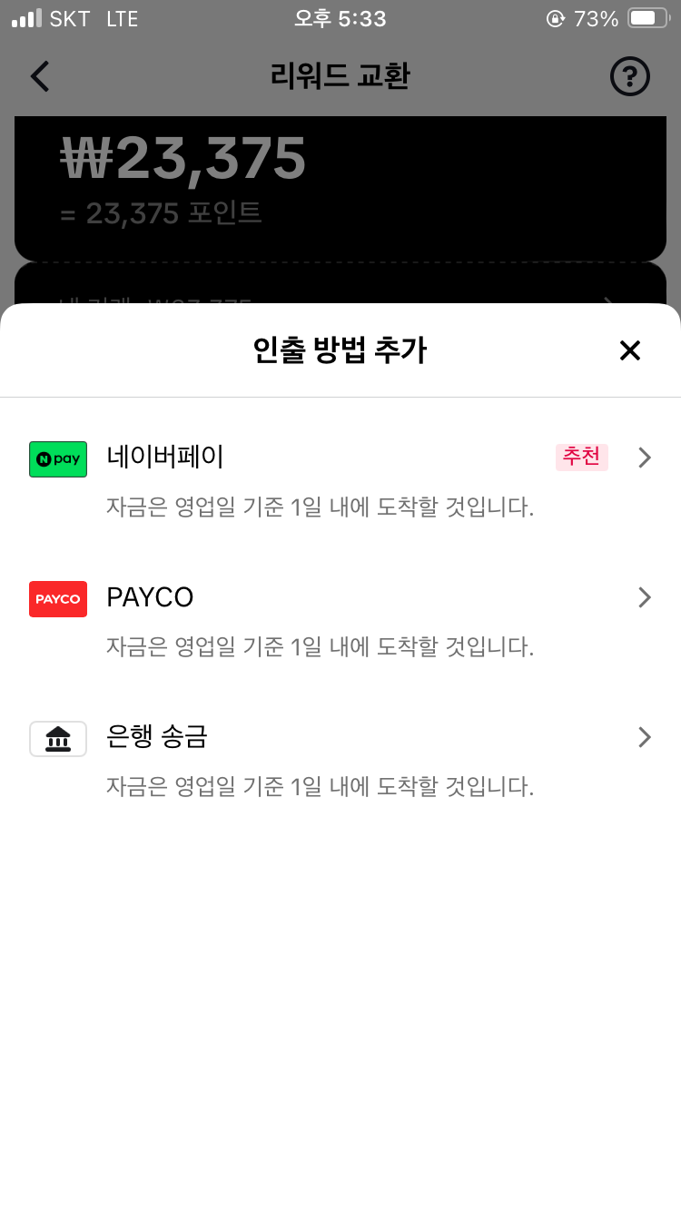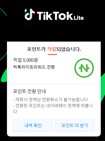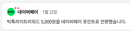 요즘 잘 안가서 네이버페이로 틱톡라이트 포인트 모은거 현금출금해서