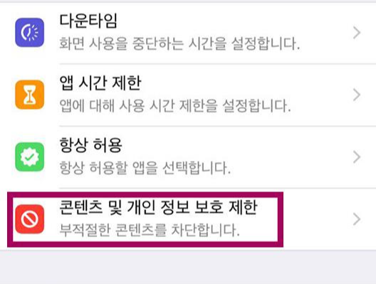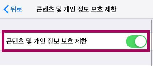 2.콘텐츠 및 개인 정보보호 제한으로 들어가면