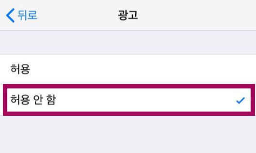 광고 허용 안함에 체크해줍니다