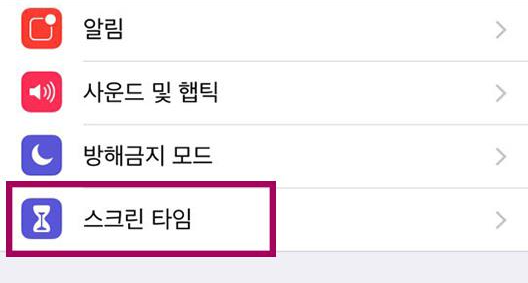1. 아이폰-설정-스크린타임 으로 들어갑니다